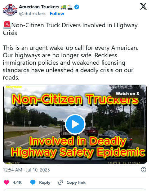 Six months ago, the advocacy group American Truckers United (ATU) emerged as a prominent voice on X (read here), leading the charge within the U.S. trucking sector against the massive influx of non-domiciled Commercial Driver’s License (CDL) holders – allowed under the globalist Biden-Harris regime – that has transformed America’s highways into both a public safety crisis and a national security risk.