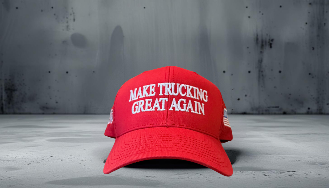 - High-quality white embroidery reading “MAKE TRUCKING GREAT AGAIN” across the front panel